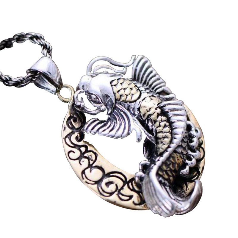 925 silver jewelry Talisman amulet Thai moon cute fish pendant for blessing brimful happiness