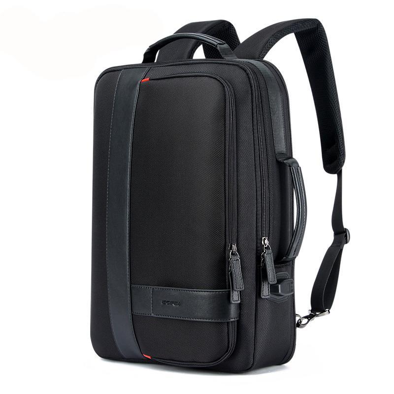 Mens USB charging leather laptop backpack / anti theft, tech, business, 15.6 Inch Laptop, macbook, computer satchel, minimalist rucksack, black bag, city, office