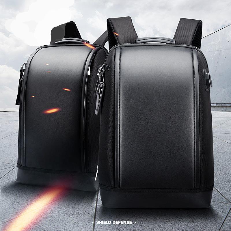 Business Backpack for Men Leather Laptop Backpacks Shell Shape USB Charge Bags for Work