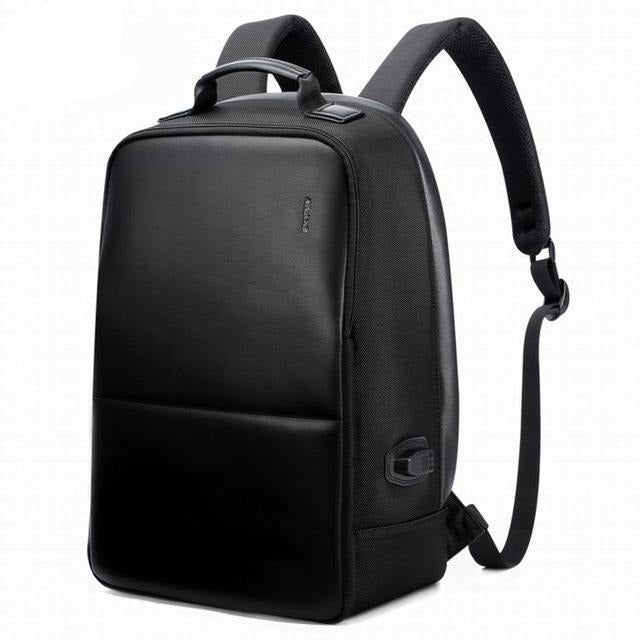 Mens USB charging leather laptop backpack / anti theft, tech, business, Laptop, macbook, computer satchel, minimalist rucksack, black bag, city, office
