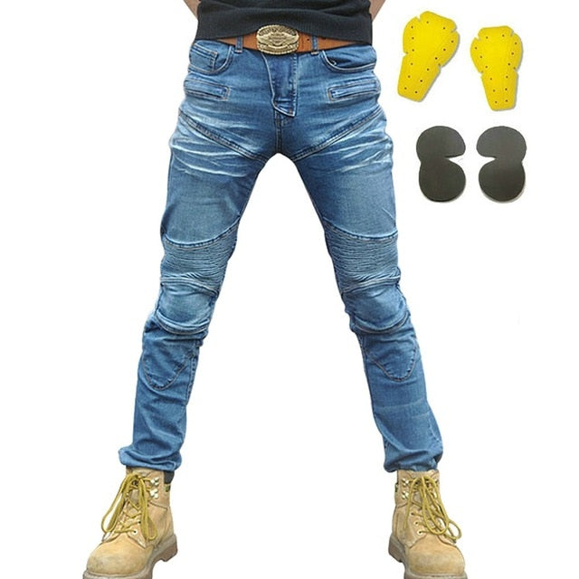 Men jeans motorcycle pants sport riding war pants trousers pantalon moto protect gear