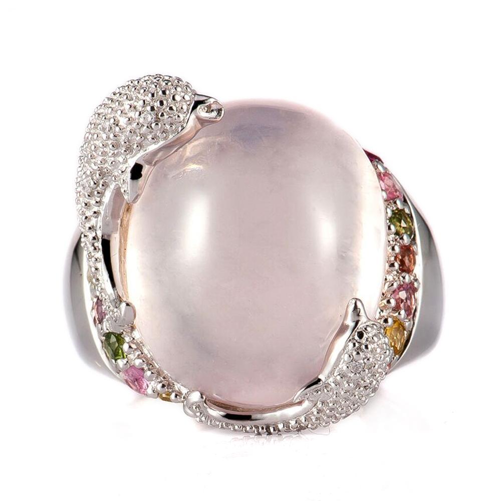 Natural bright tourmalines 925silver ring oval rose lemon quarts vivid dolphins lovely