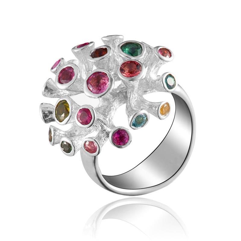 Natural gemstone 925silver ring tourmaline amethyst citrine charm vintage