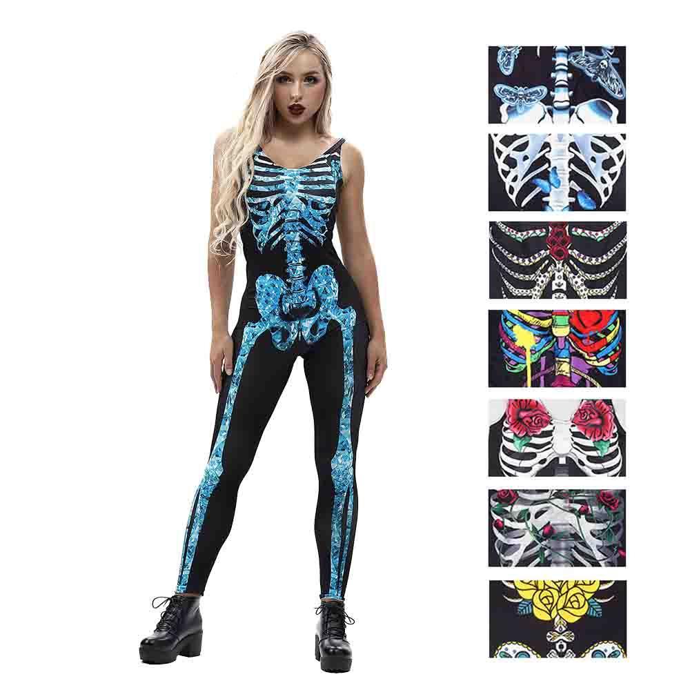 Sexy halloween fantastic scary costume women catsuit jumpsuit cosplay skeleton rose print