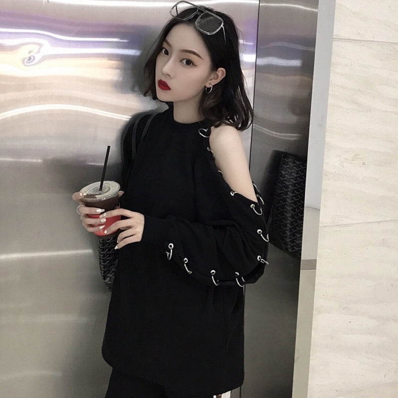 Sexy korea black casual harajuku t-shirt long sleeve for women