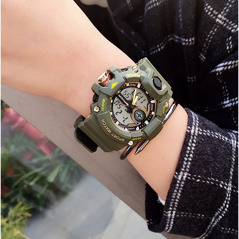 Sport wristwatch women watch LED waterproof army color analog digital clock