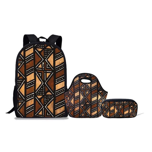 Vintage canvas backpack African traditional printed bags set school bag girls students 3pcs