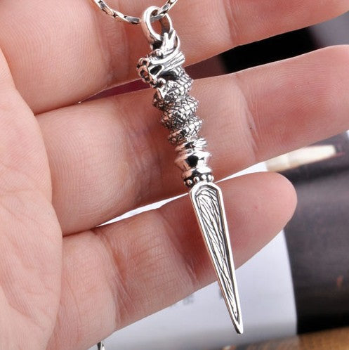 Vintage handmade 925 silver jewelry Tibetan dragon dorje pendant amulet gift
