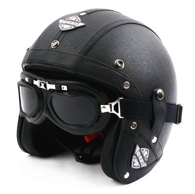 Vintage leather open face motorcycle helmets jet retro pilot helmet cruiser