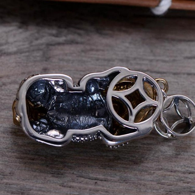 Vintage pendant 925 sterling silver jewelry with lucky coin talisman amulet