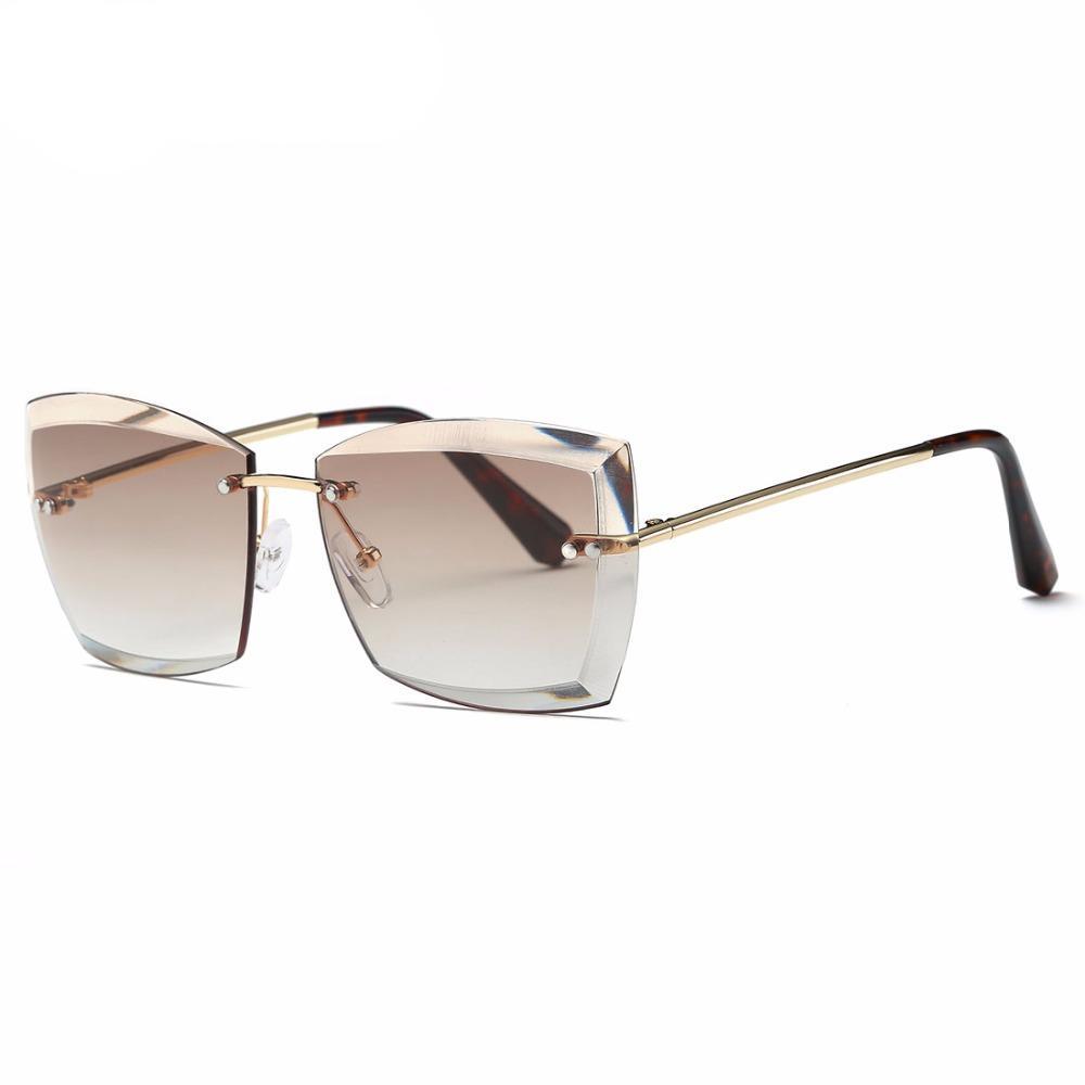 vintage women sunglasses square rimless diamond cutting lens fashion luxury